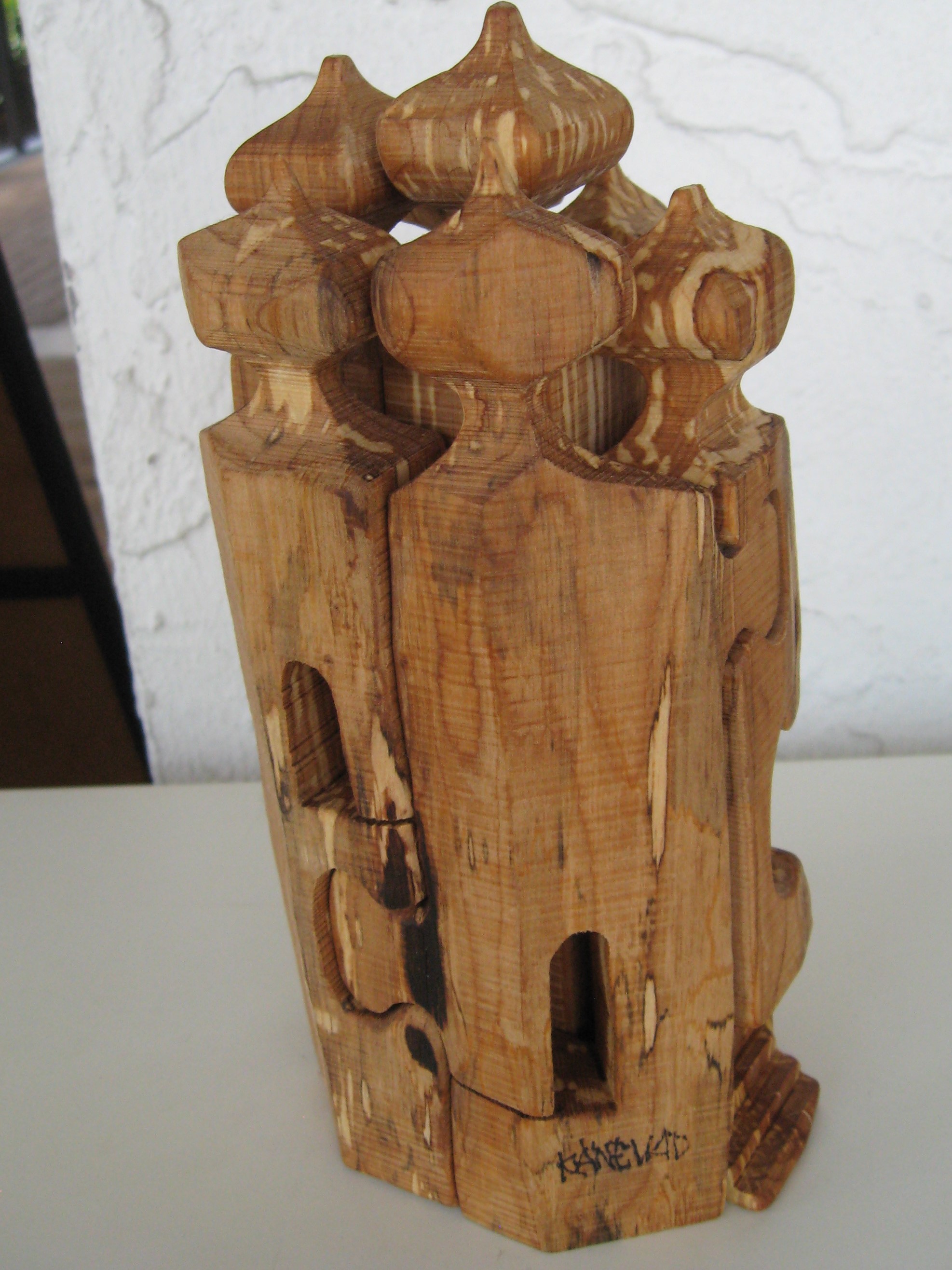 Castle/puzzle by Gunnar Kanevad; world famous Swedish wood sculptor 12″ tall distressed birch
