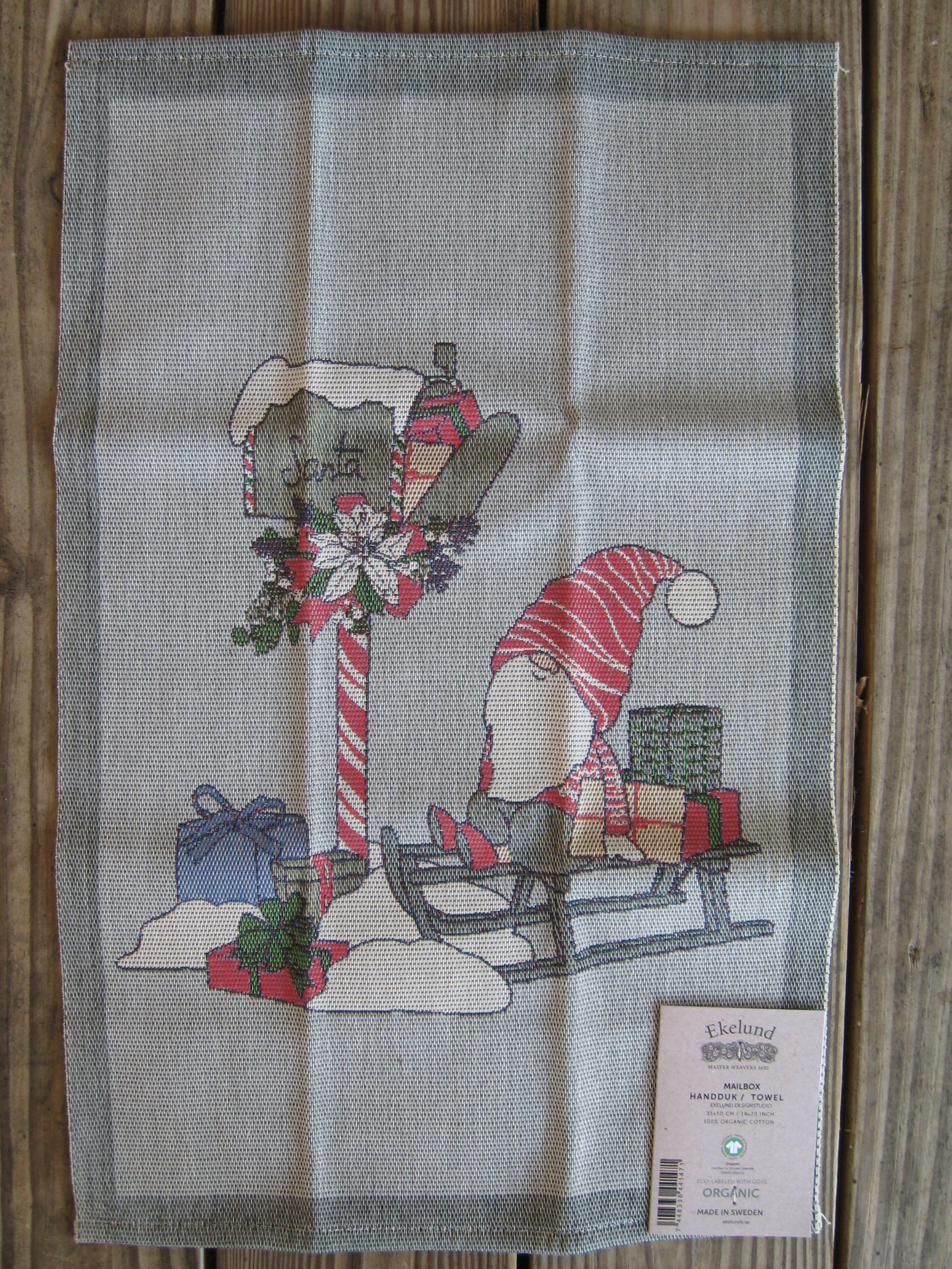 100% organic cotton Christmas towel “Mailbox” 21″ x 13″ by Ekelund of Sweden SPECIAL
