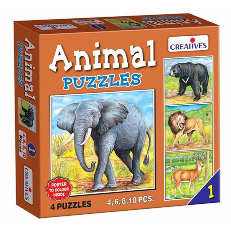 Animal Puzzle No.1, 4 Puzzles (4, 6, 8, 10 Pieces)