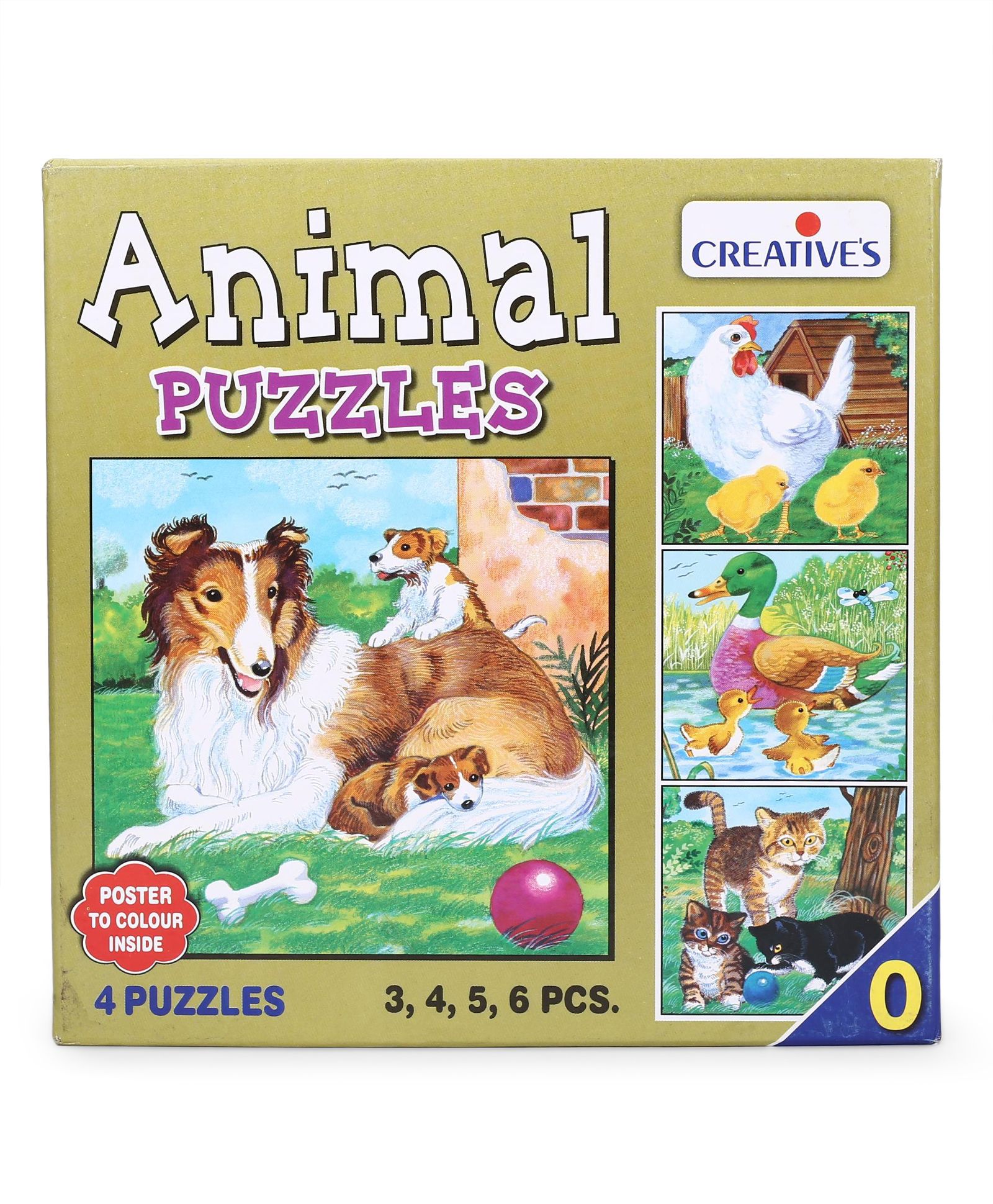 Animal Puzzles, 4 Puzzles (3, 4, 5, 6 Pieces)